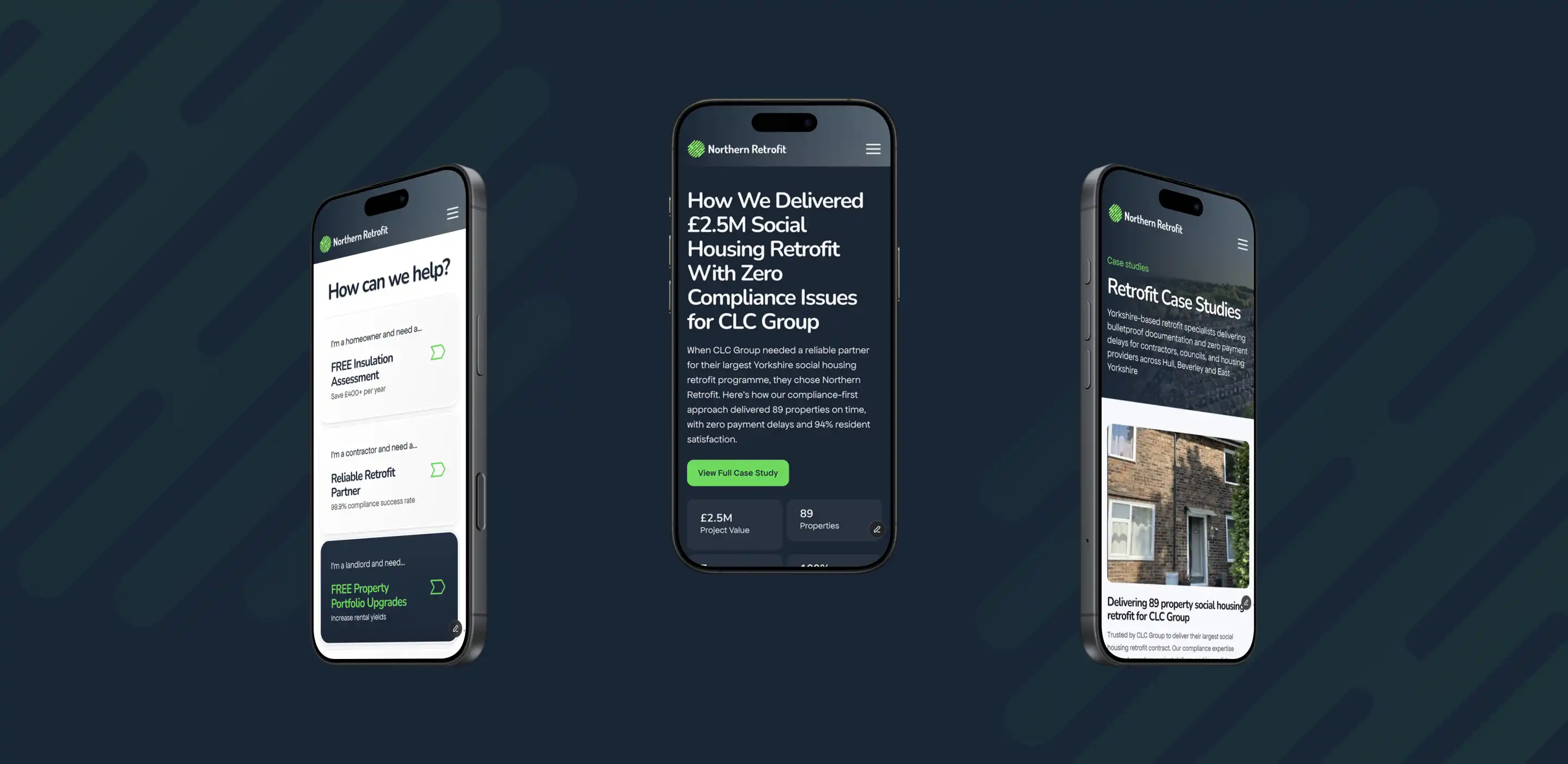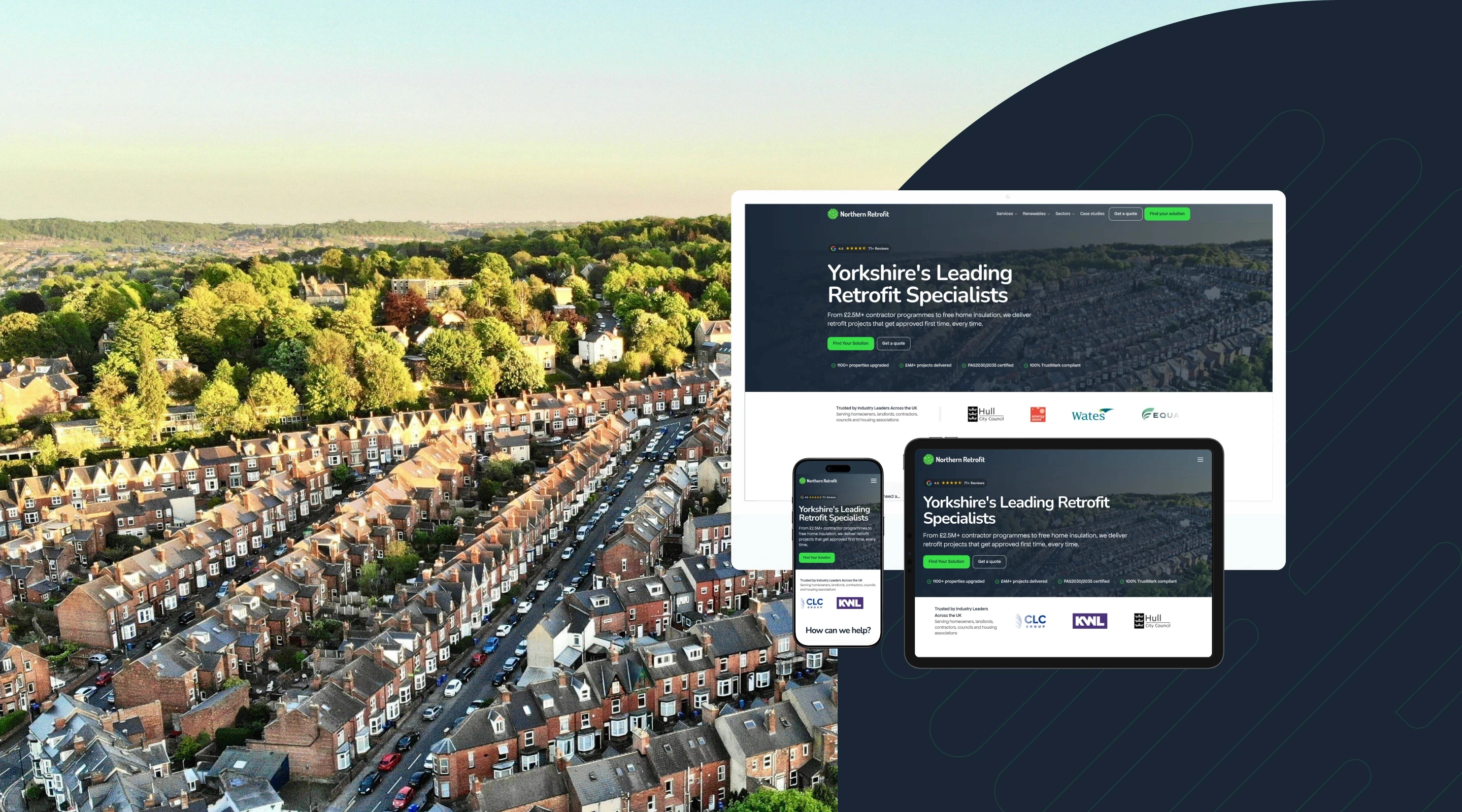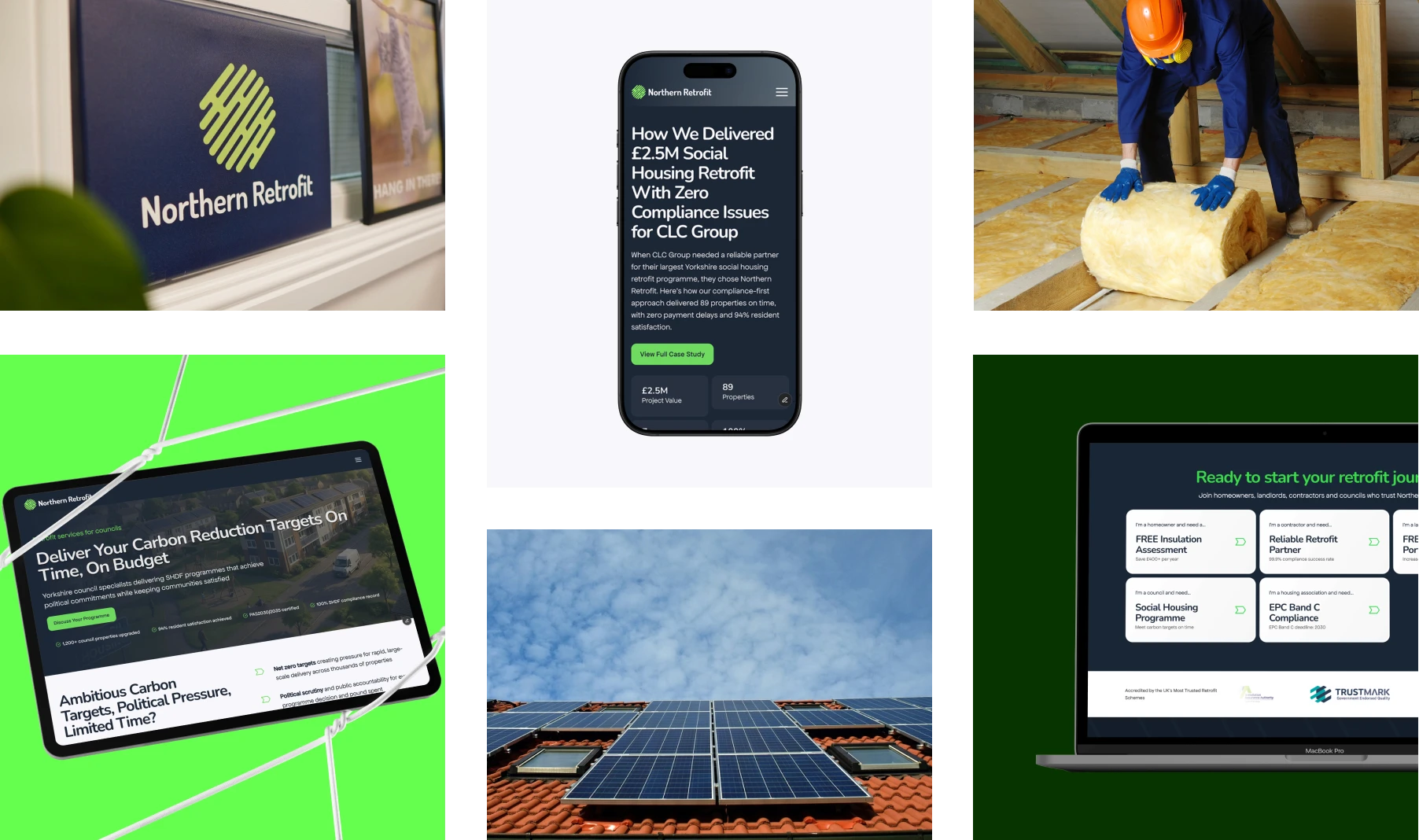 When Northern Retrofit approached us, their challenge wasn’t a lack of demand — far from it. They had over £3.5M of work lined up, but their online presence didn’t communicate credibility, clarity, or professionalism. Their existing website lacked clear messaging, wasn’t converting visitors effectively, and didn’t reflect the scale or ambition of the business.
