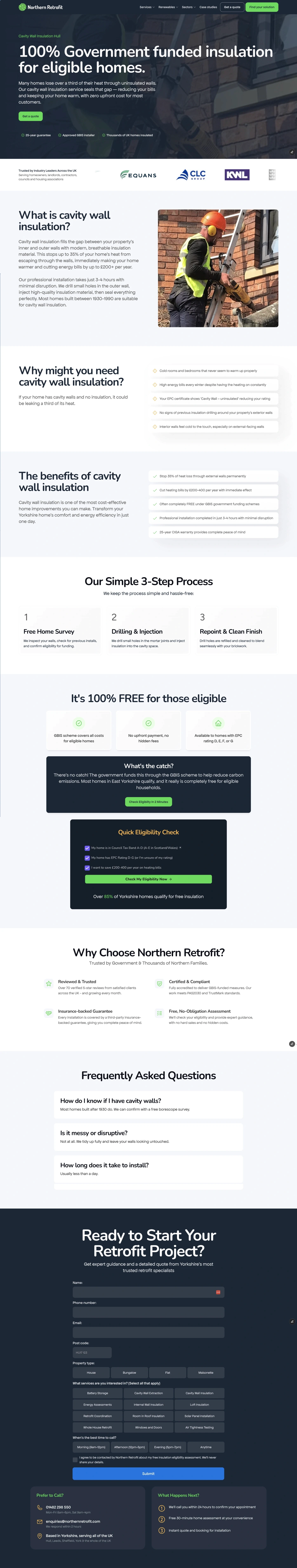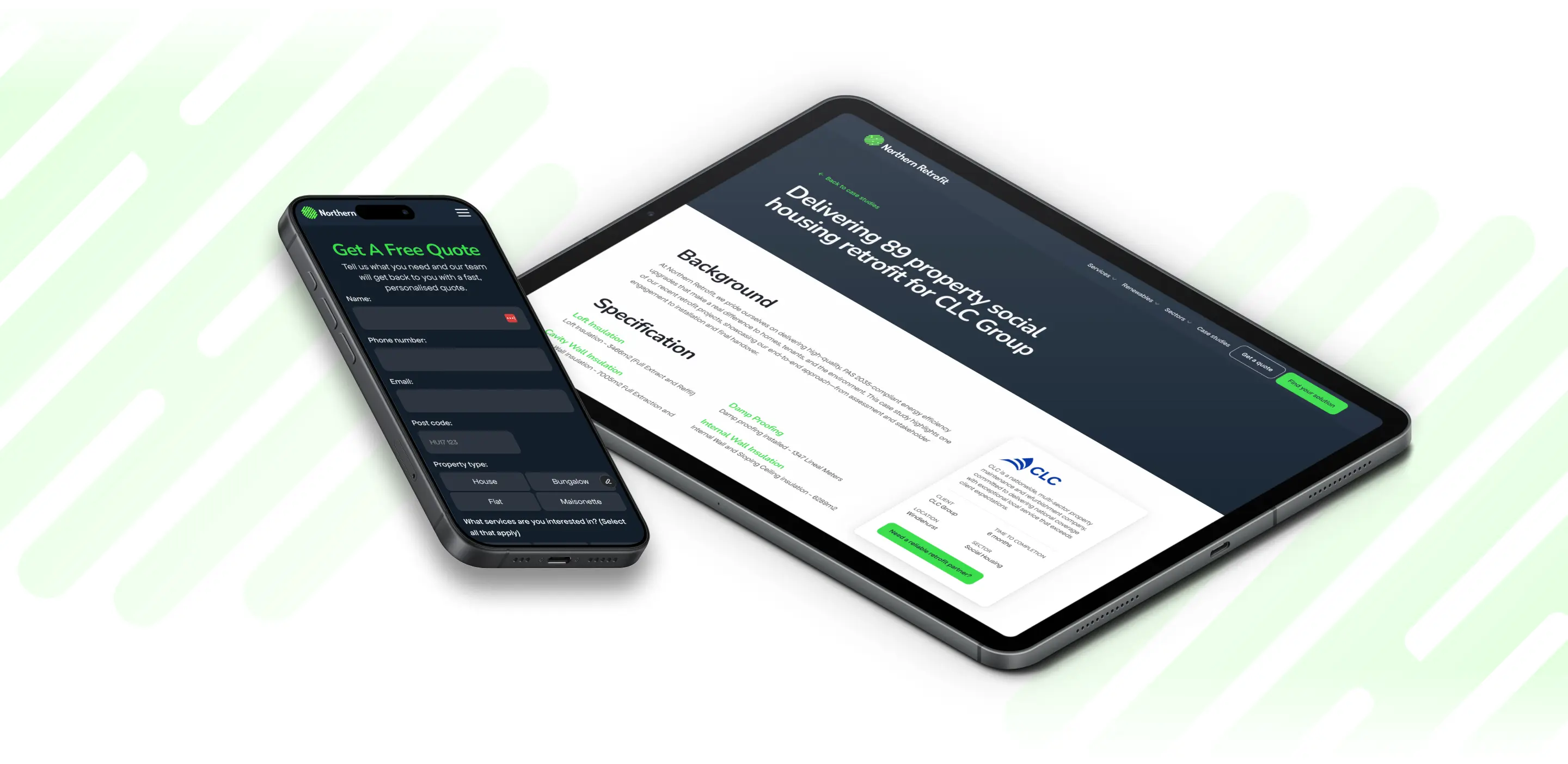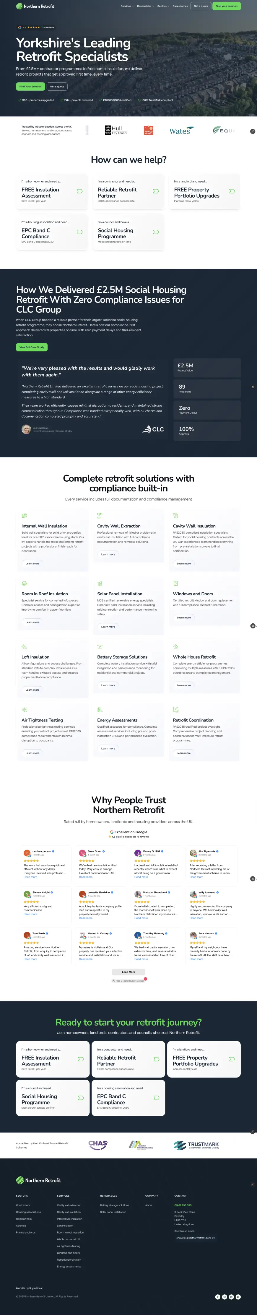 When Northern Retrofit approached us, their challenge wasn’t a lack of demand — far from it. They had over £3.5M of work lined up, but their online presence didn’t communicate credibility, clarity, or professionalism. Their existing website lacked clear messaging, wasn’t converting visitors effectively, and didn’t reflect the scale or ambition of the business.
