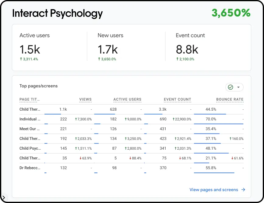 InterACT Psychology is a child psychology practice in Abingdon, Oxfordshire. After launching a Framer website with our Local Search Kickstart programme, they now rank: